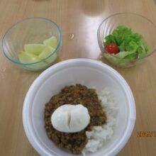 すてっぷあっぷはキーマカレーとサラダ、季節の果物でした✨