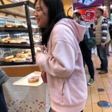 お小遣いを持って、ミスタードーナツにおやつを買いに行きました。