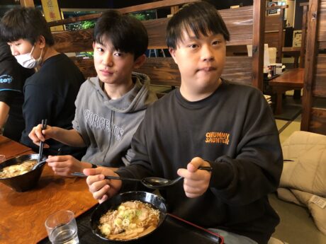 外食では、風の谷で食事をしました‼️風の谷といえばたくさんの魚に囲まれた場所で、待っている間にみんなで観賞しました🐟🦈小さいかわいい魚から、ぞっとする大きな魚まで、楽しめたようです😁ご飯はラーメンが人気でした😙みなさん姿勢がよく、食べ方もとてもきれいでした🤩