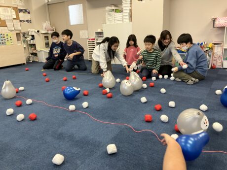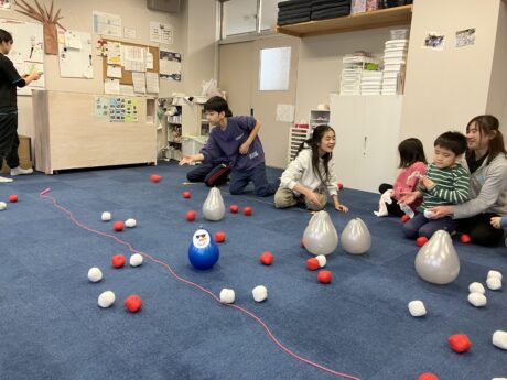 <わんすてっぷ> クリスマス会では、雪合戦の代わりに紅白玉と風船を使ったゲームをしました😜みんなで話し合って作戦をたてて、協力をして活動することができました‼️また、クリスマスのコスプレをして楽しめたようです🎅