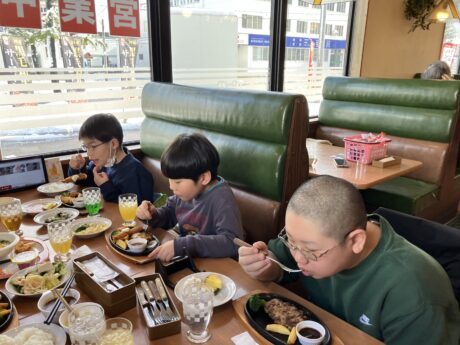 外食では、五所川原にある「グリルすとう」に行きました‼️たくさんメニューがある中で悩んだようで、カレーライスやお子様ランチなど様々でしたが人気はラーメンでした🍜とても美味しかったようです🤩また、子どもたちの座っている姿勢もとても良かったです👌